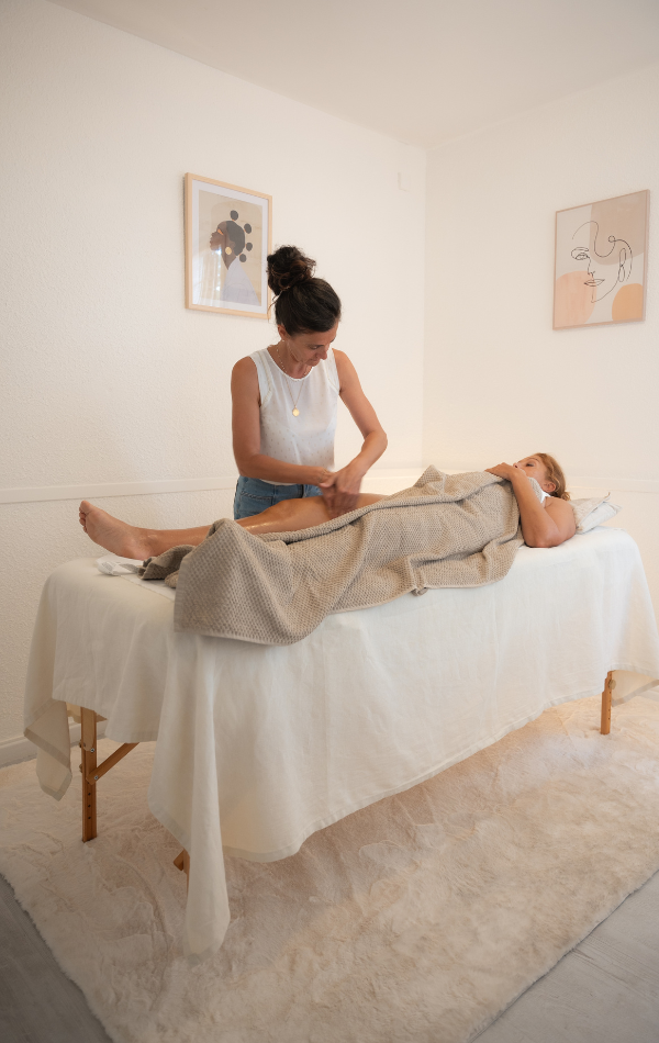 La séance commence par des mouvements précis, rapides et rythmés appliqués sur tout le corps pour stimuler le système lymphatique. Le massage se concentre sur plusieurs zones clés où la lymphe peut s’accumuler. J’exerce des pressions variées, alternant entre des gestes profonds et des mouvements plus légers pour diriger la lymphe vers les ganglions lymphatiques, où elle est ensuite filtrée et éliminée.